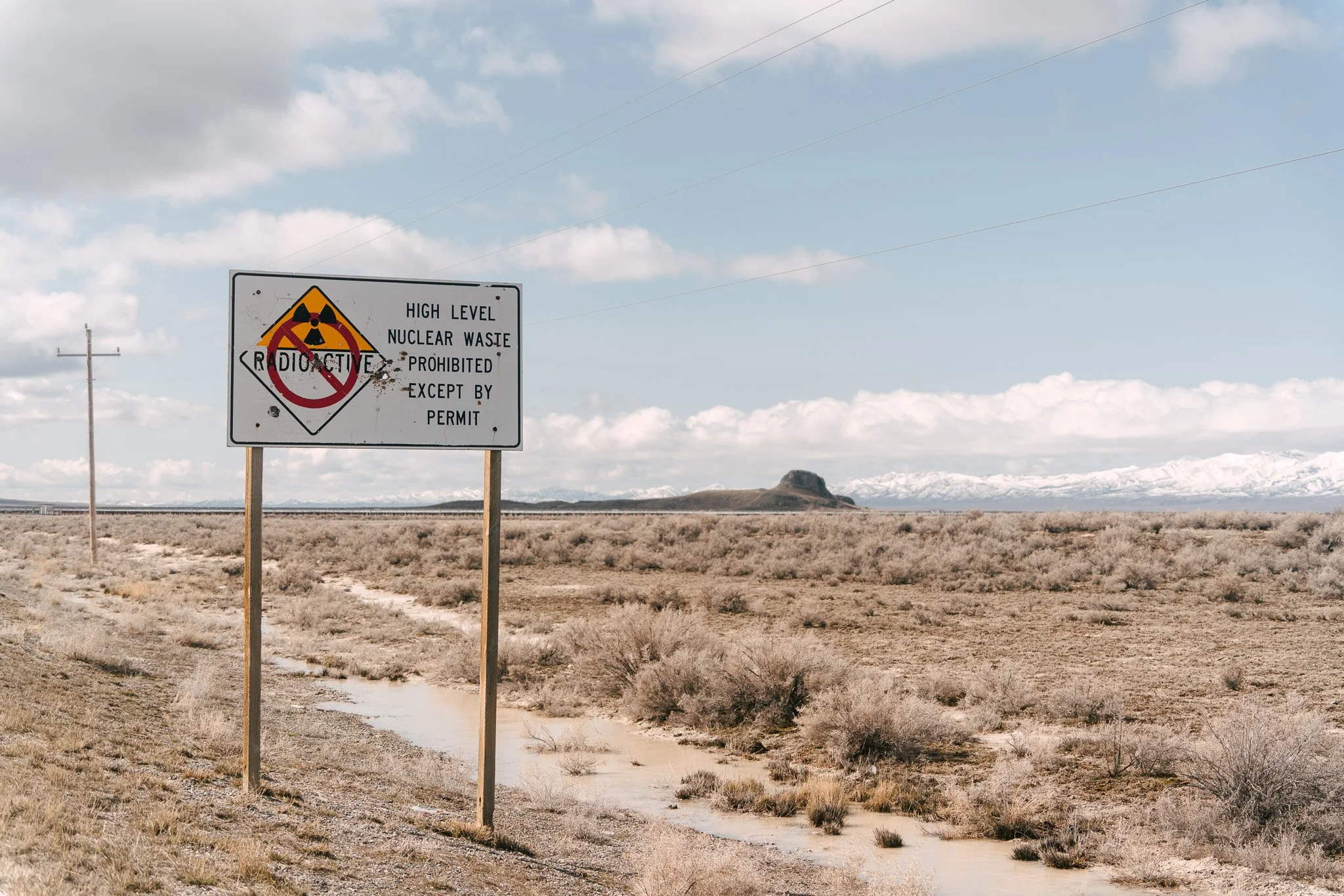 This photo was taken in Skull Valley, just west of Salt Lake City. The conflict between the desert landscape and snowy mountains and the nuclear waste sign was pretty striking to me. Although many might see the desert as a barren wasteland suitable for nuclear waste, it’s actually an important ecosystem. The sign also appears to be riddled with bullet holes, which is just very Utah.